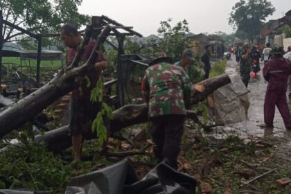Cirebon – Anggota Koramil 0620-21/Suranenggala Kodim 0620/Kabupaten Cirebon bergerak cepat membantu masyarakat pasca terjadinya bencana angin puting beliung yang disertai hujan deras di Desa Muara, Ke...