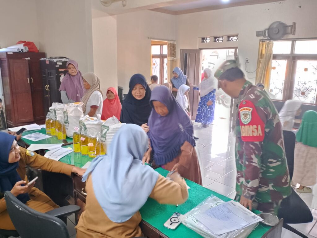 Babinsa Koramil 2017/Ciwaringin Monitoring Pembagian Bantuan Pangan di Desa Gintung Tengah