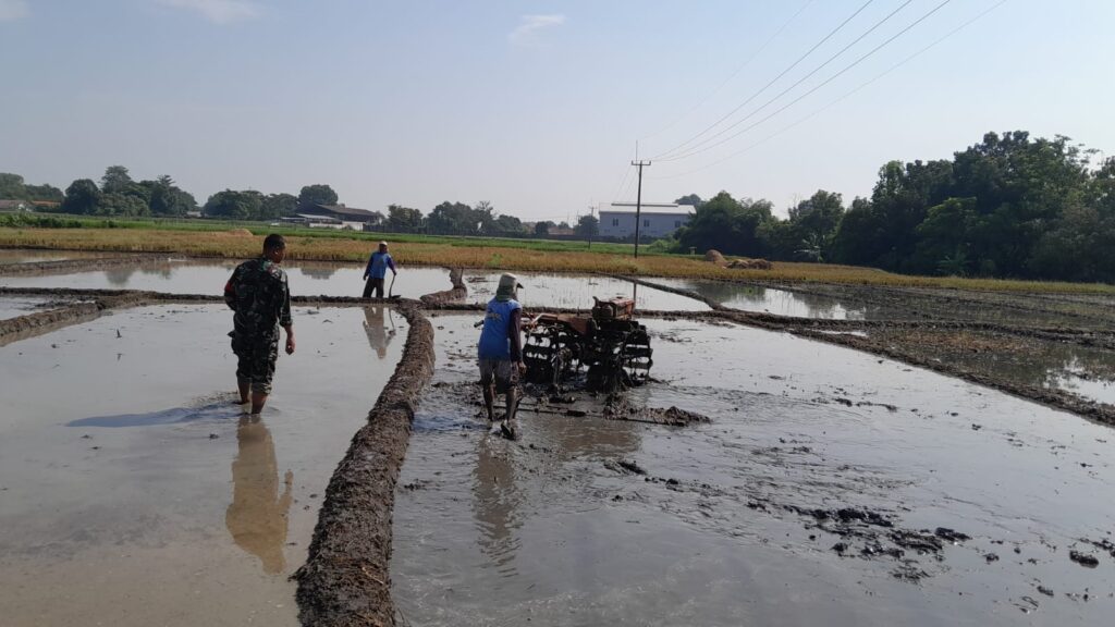 Babinsa Palimanan Timur Dampingi Petani Siapkan Lahan Tanam Padi Program LTT