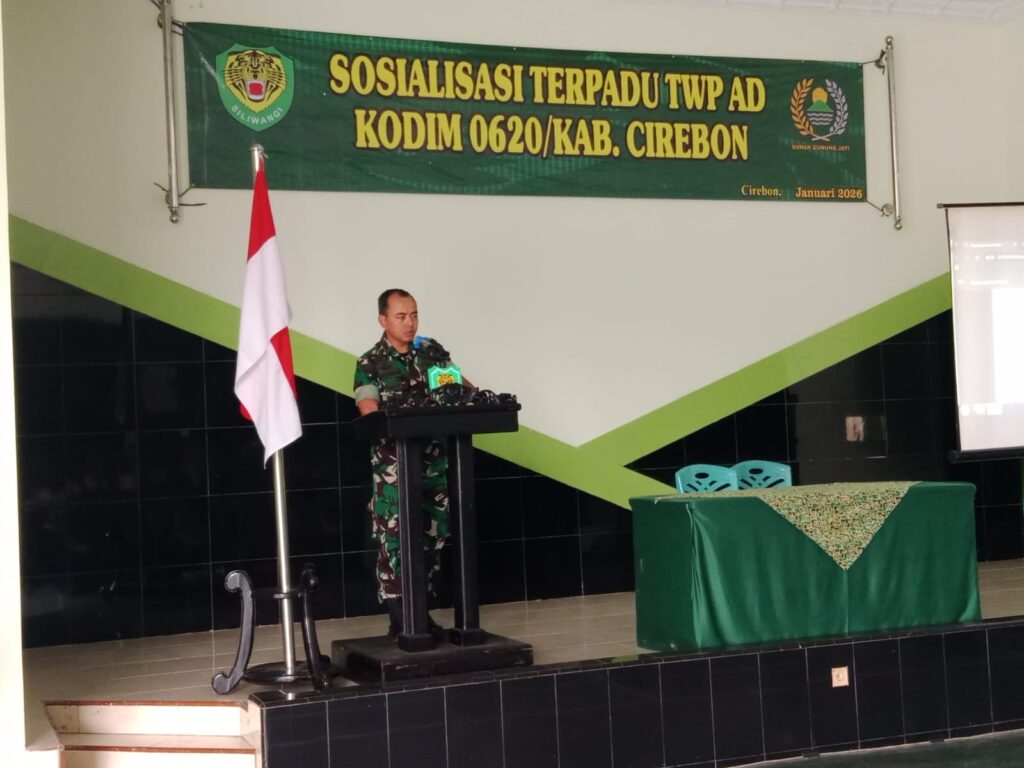Kabupaten Cirebon – Senin, 12 Januari 2026 Komandan Kodim (Dandim) 0620/Kabupaten CirebonLetkol Inf Mukhammad yusron,S.A.P melaksanakan kegiatan Sosialisasi Terpadu Tata Wilayah Pertahanan (TWP) Angkatan Darat Tahun Anggaran 2026, bertempat di Makodim Kabupaten Cirebon,