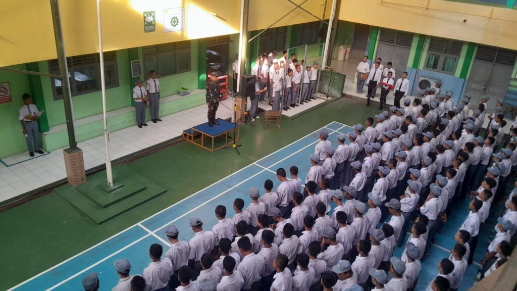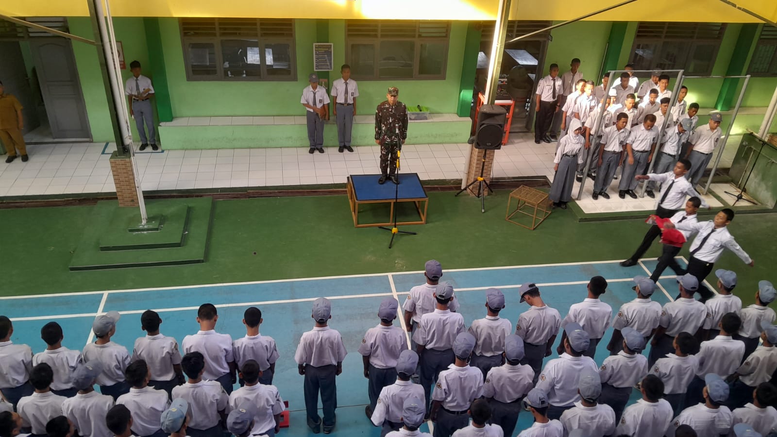 Palimanan, 15 September 2025 – Danramil 0620-16/Gempol, Kapten Arm Karsim, bertindak sebagai Inspektur Upacara di SMK PGRI 2 Palimanan, yang berlokasi di Desa Palimanan Timur, Kecamatan Palimanan, pada hari Senin (15/9). Kegiatan ini sekaligus menjadi momentum penyampaian pengarahan tentang Wawasan Kebangsaan dan Bela Negara kepada para siswa dan siswi sekolah tersebut.