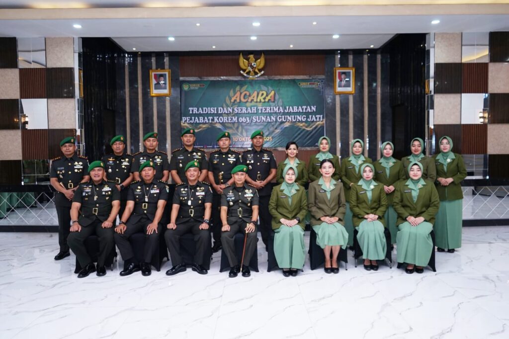 Kota Cirebon – Komando Resor Militer (Korem) 063/Sunan Gunung Jati menggelar Acara Tradisi dan Serah Terima Jabatan (Sertijab) sejumlah pejabat di lingkungan Korem 063/SGJ, serta pemberian hadiah kepada para pemenang Lomba Keagamaan dalam rangka memperingati HUT ke-80 TNI Tahun 2025, bertempat di Aula Sunan Gunung Jati Korem 063/SGJ, Jl. Brigjen Darsono, Kota Cirebon, Jumat (10/10/2025).