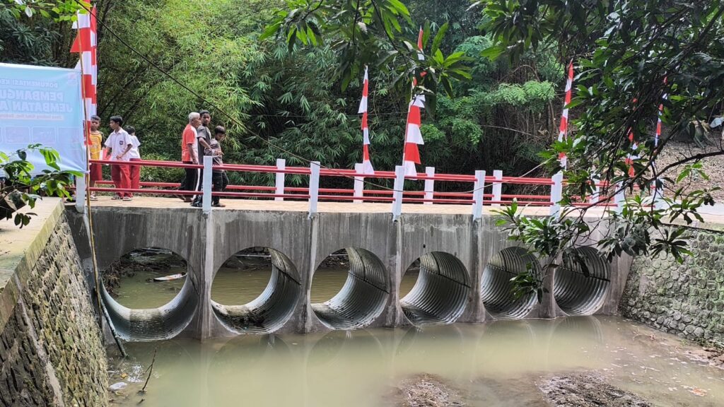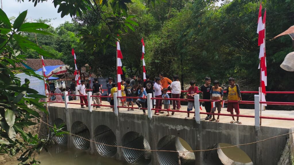 Jembatan yang dibangun oleh anggota TNI dari Kodim 0620 Kabupaten Cirebon ini kini menjadi akses vital yang sangat dinantikan warga.