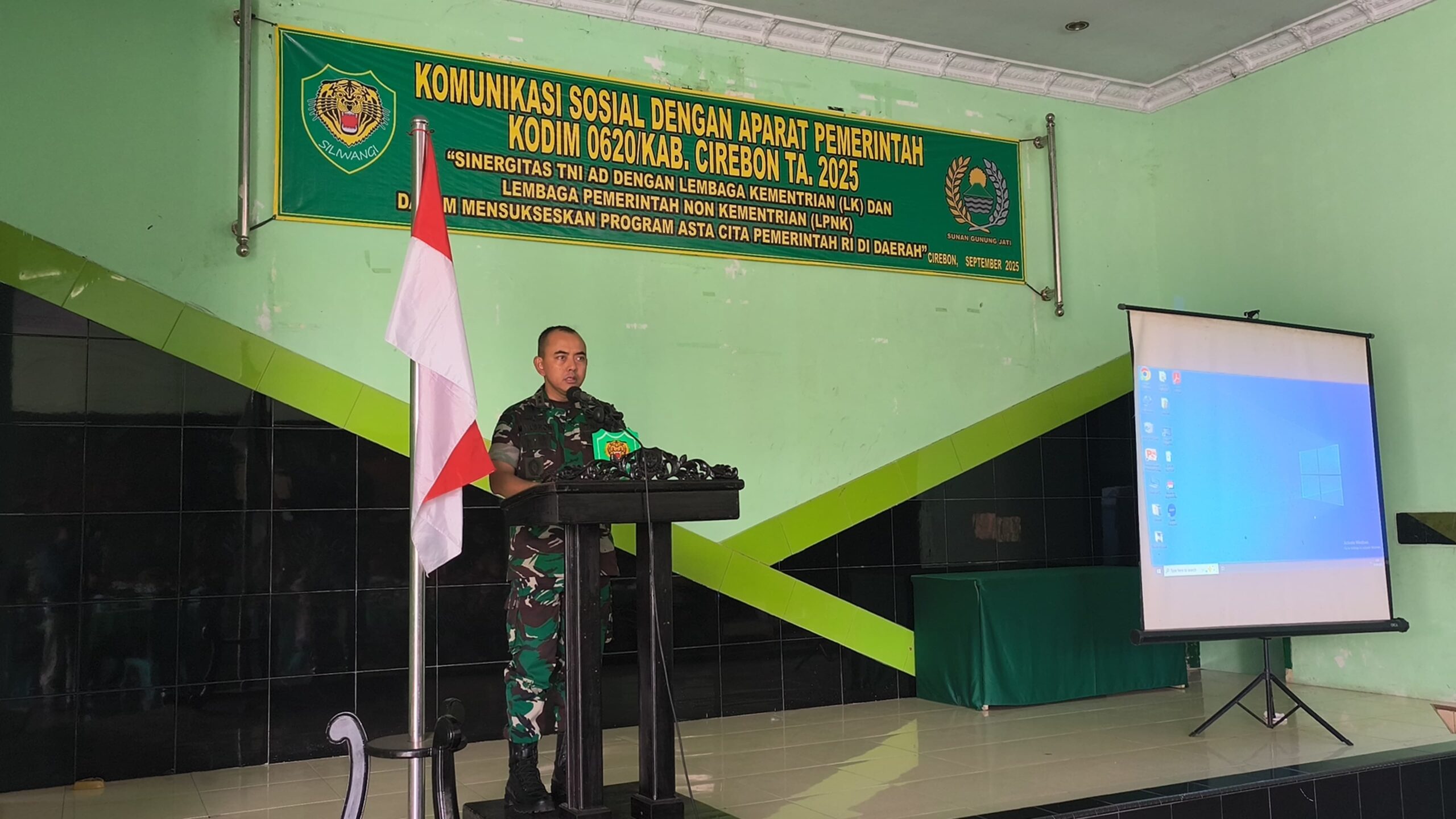 Cirebon, 25 September 2025 – Komando Distrik Militer (Kodim) 0620/Kabupaten Cirebon melaksanakan kegiatan Komunikasi Sosial (Komsos) dengan aparat pemerintah yang berlangsung di Aula GSG Jati Manunggal Kodim 0620/Kab. Cirebon. Kegiatan ini mengusung tema: “Sinergitas TNI-AD dengan Lembaga Kementerian (LK) dan Lembaga Pemerintah Non Kementerian (LPNK) dalam Mensukseskan Program Asta Cita Pemerintah RI di Daerah.”