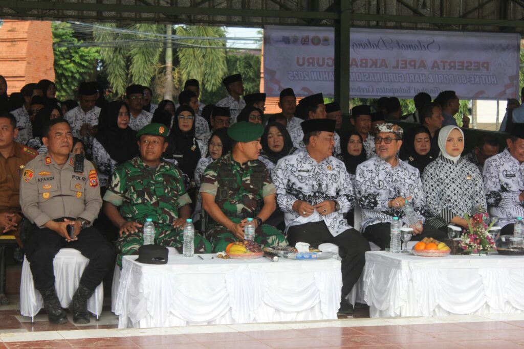 Cirebon, 25 November 2025 — Komandan Kodim 0620/Kabupaten Cirebon Letkol Inf Mukhammad Yusron, S.A.P menghadiri Apel Akbar peringatan Hari Guru Nasional 2025 yang digelar di Stadion Rangga Jati, Selasa pagi. Upacara berlangsung khidmat dengan dihadiri unsur Forkopimda Kabupaten Cirebon, para pendidik, dan pelajar.