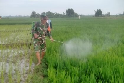 Babinsa Dampingi Poktan Sirandu Jaya Lakukan Penyemprotan Hama Padi Dukung Ketahanan Pangan Nasional