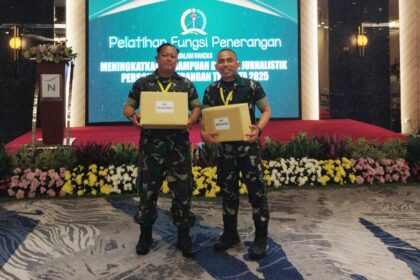 Jakarta – Dua personel Penerangan Korem 063/Sunan Gunung Jati, Serma Sacred dan Serda Fajar, mengikuti kegiatan Pelatihan Fungsi Penerangan dalam rangka meningkatkan kemampuan bahasa jurnalistik perso...