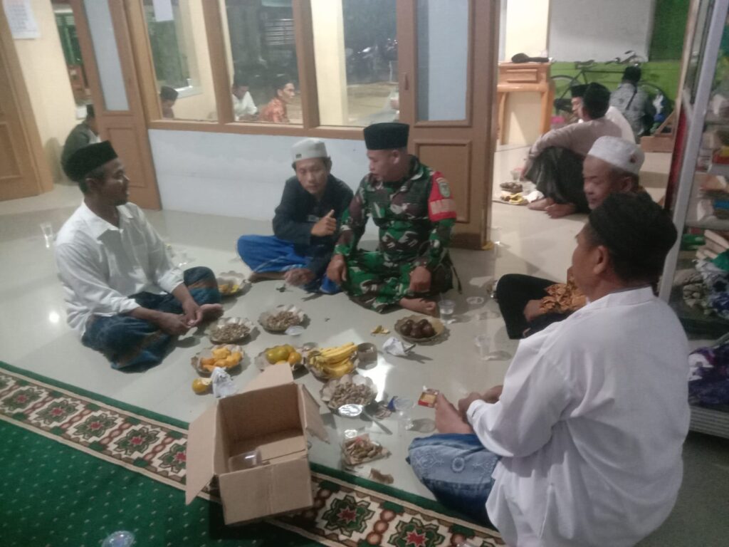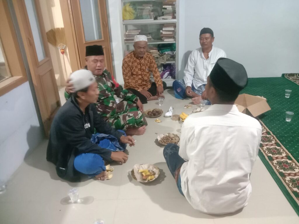 Serka Rosyadi, Babinsa Desa Sumber Kidul Kecamatan Babakan Koramil 0620-05/Babakan, melaksanakan kegiatan Komunikasi Sosial (Komsos) bersama tokoh masyarakat (Tomas), tokoh agama (Toga), serta warga masyarakat dalam rangka mengikuti pengajian rutin yang berlangsung di Mushola Al-Hikmah, wilayah Desa Sumber Kidul.