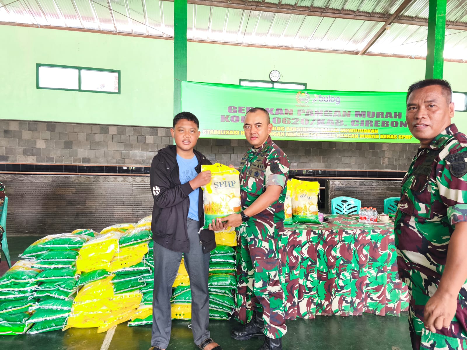 “Kodim Kabupaten Cirebon memfasilitasi kegiatan pangan murah dengan menjual sejumlah komoditas pokok, seperti Beras SPHP seharga Rp 58.000 per 5 kg dan Beras Premium seharga Rp 73.500 per 5 kg. Selain itu, juga tersedia komoditas lain seperti gula, tepung, dan minyak goreng,” jelas Dandim.